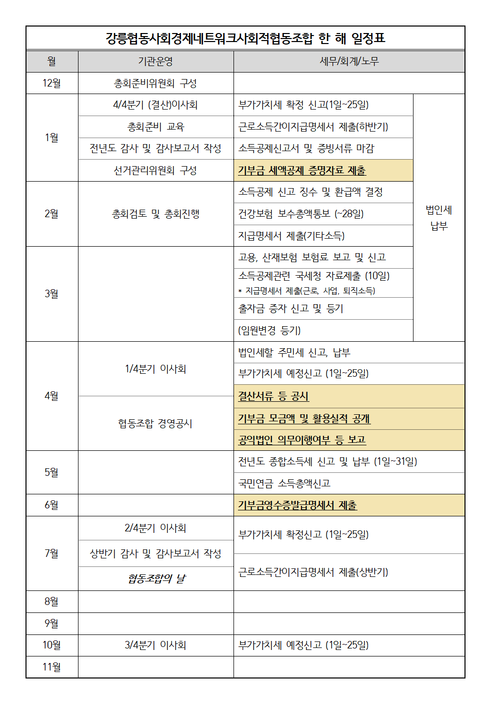 여느 사회적협동조합과 비슷한 일정으로 운영될 것이고요.