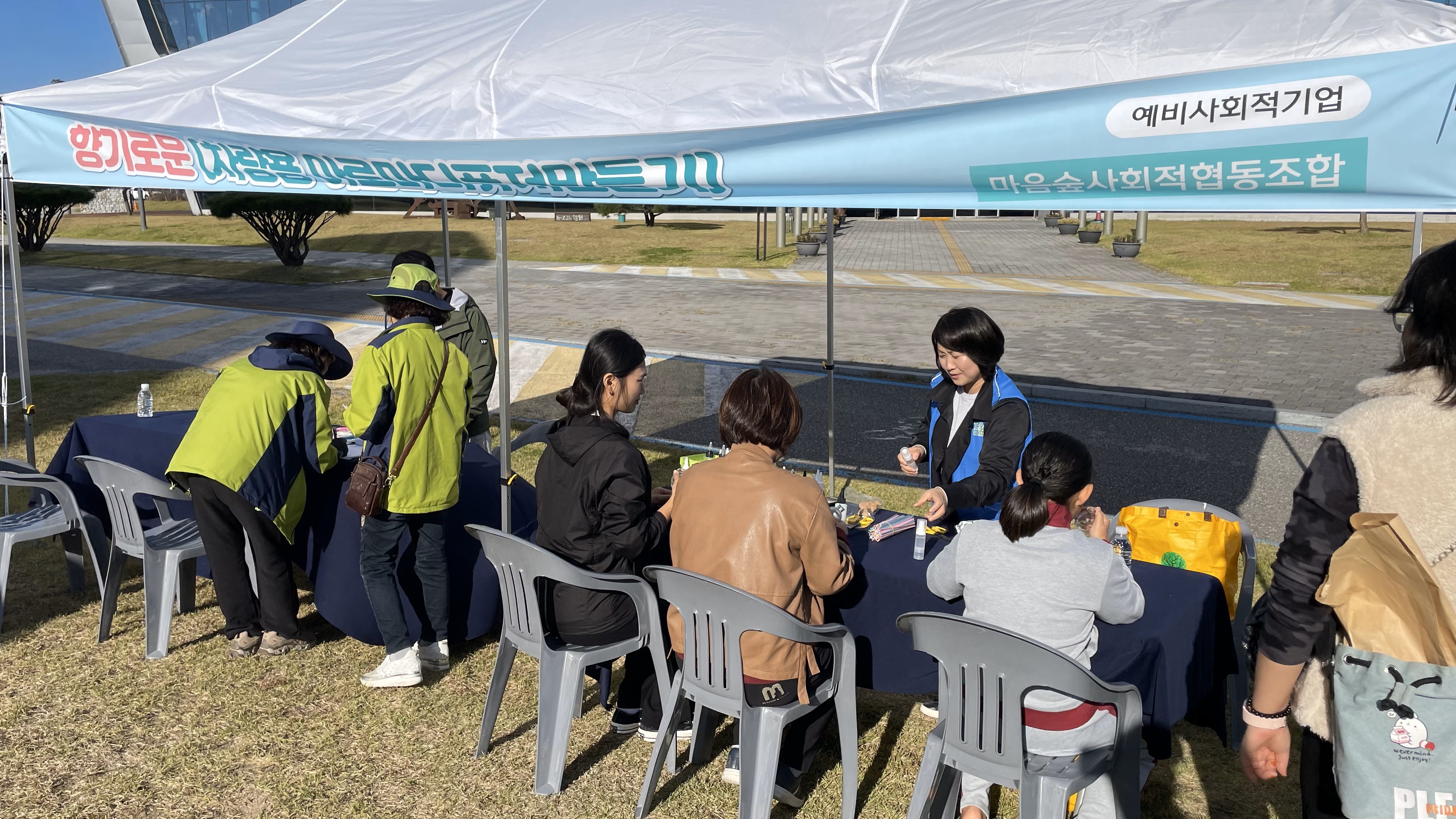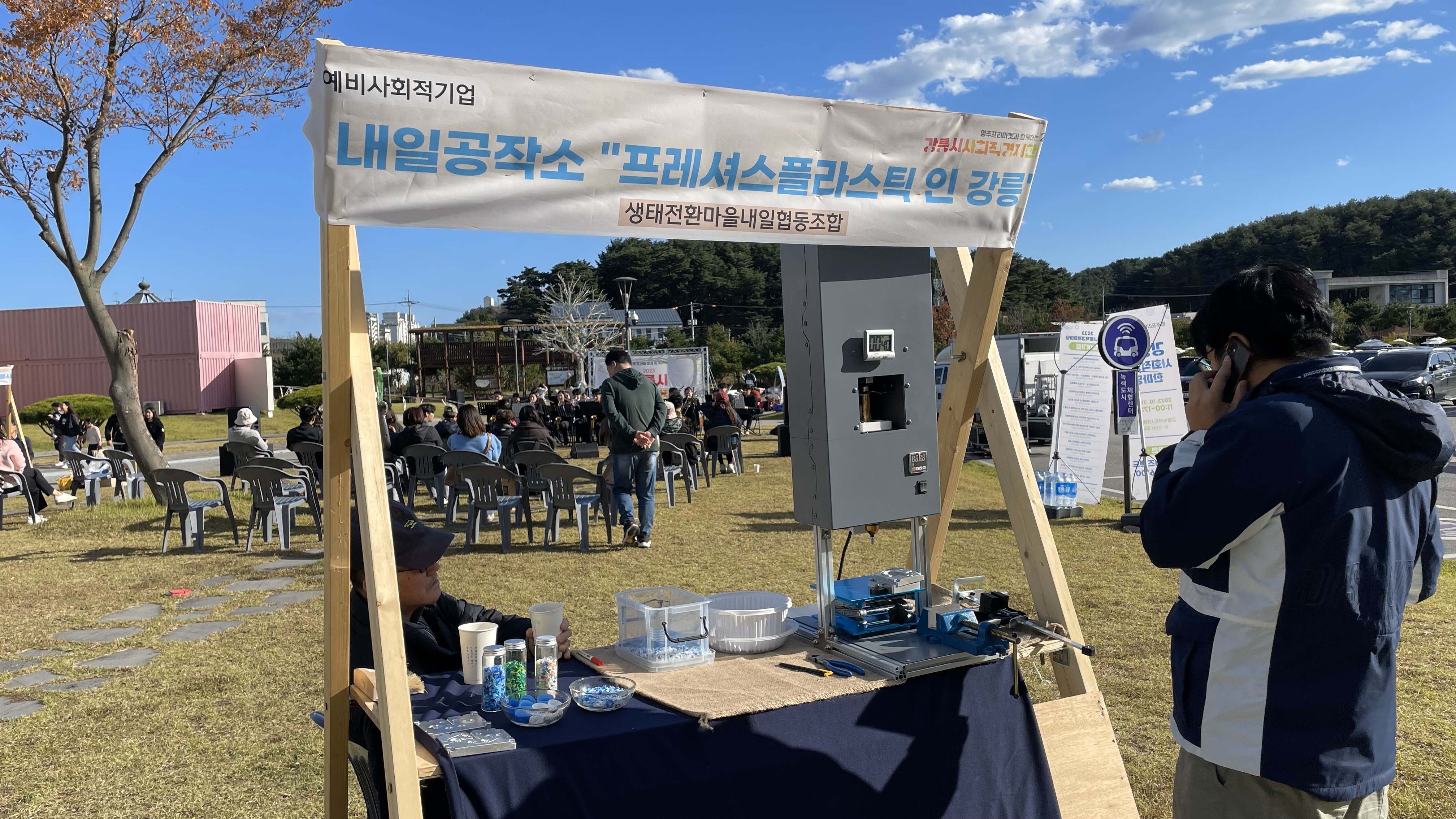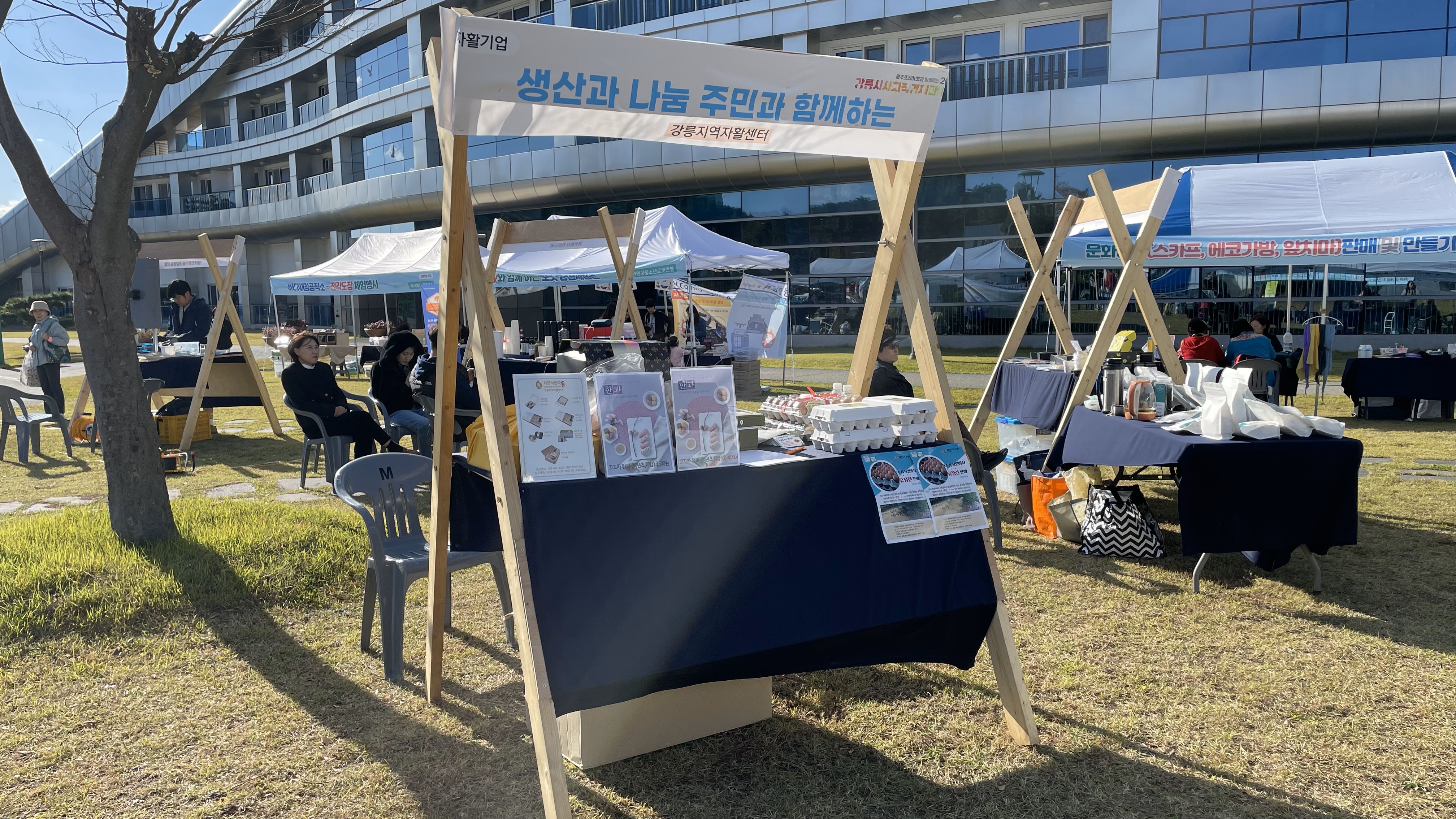 강릉녹색도시체험센터 이젠(e-zen) 에서 2023 강릉시사회적경제한마당이 진행됩니다.강릉녹색도시체험센터 이젠(e-zen) 에서 2023 강릉시사회적경제한마당이 진행됩니다.아트필 재즈밴드 공연이 준비되어 있습니다.강릉시사회적경제한마당 행사안내 배너강릉지역자활센터와 행복농장은 한과, 유정란 판매 접수를 진행하였습니다.강릉협동사회경제네트워크 사회적협동조합은 운영본부, 사회적경제 5행시를 진행하였습니다.기쁨가득사회적협동조합은 사전연명의료의향서 홍보 및 상담, 접수를 진행하였습니다.(사)대한민국청소년로봇연맹에서 로봇 융합체험을 진행하였습니다.마음숲사회적협동조합에서 차량용 아로마디퓨저만들기 행사를 진행하였습니다.명주프리마켓과 함께 진행하였습니다.생태전환마을내일협동조합에서 분쇄된 플라스틱을 이용한 단추만들기, 카라비너 만들기를 진행하였습니다.소금강마을영농조합법인에서 복숭아병조림, 복숭아잼 판매수플사회적협동조합의 재활용품으로 만드는 놀잇감 체험행사숲앤락사회적협동조합의 야생화심기, 나무수첩만들기 체험과 천연숯가습기, 커피박화분 판매주식회사 아트필의 아트필재즈밴드 공연예비마을기업인 어흘리마을회협동조합의 꽃차, 천연염색 손수건, 스카프 판매사회적경제 5행시옥거리마을관리사회적협동조합의 에코가방 만들기 및 스카프, 앞치마 판매강릉 유일의 커피전문 사회적기업인 유한회사 커피누리의 대박세일행사(재)사랑의장기기증운동본부 강원영동지부에서 참여해주셨습니다.주식회사 프로방스의 전각도장 체험행사! 가장 인기가 좋았습니다.유한회사 천향에서 천연비누 무료증정 이벤트를 진행하였습니다.